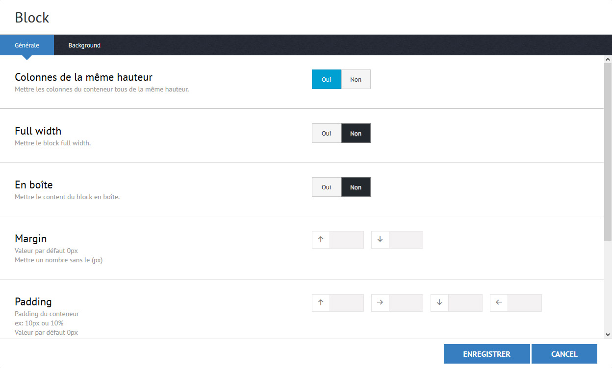 Simple d'utilisation l'editeur de conteneur (Block), vous permet de facilement changer l'affichage de votre conteneur.