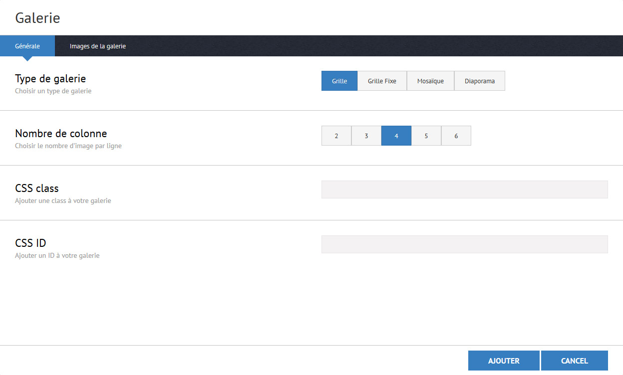 Selectionner vos images dans votre librairie et créer votre galerie d'image.